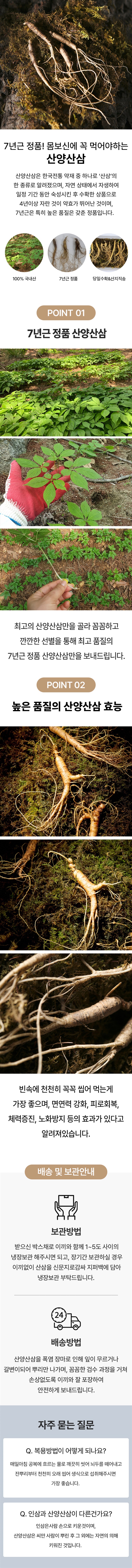 | 1. 포장단위별 용량(중량), 수량, 크기 | 7년근 산양산삼 소짜 100g / 약 40-50뿌리 |