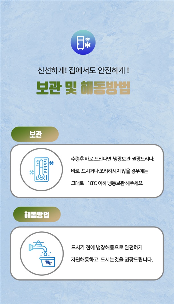| 6. 보관방법 또는 취급방법 | 냉동보관 |