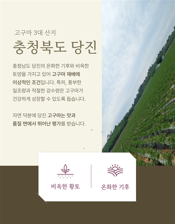 1. 포장단위별 용량(중량), 수량, 크기 | 당진 호박고구마 3kg,당진 호박고구마 5kg,당진 호박고구마 10kg,못난이 당진 호박고구마 5kg,못난이 당진 호박고구마 10kg |