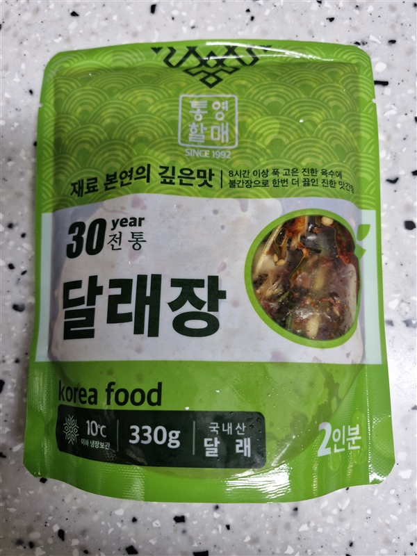 | 1. 포장단위별 용량(중량), 수량, 크기 | 30년전통 통영달래장 330g / 1팩 |