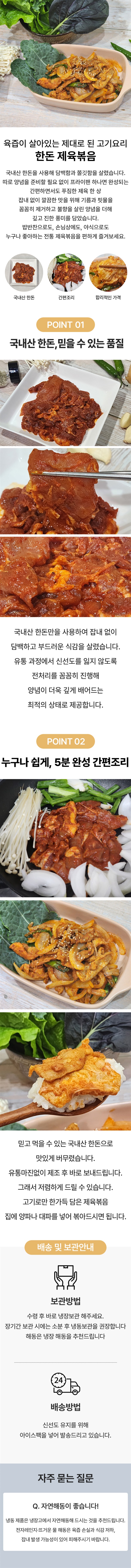 | 1. 포장단위별 용량(중량), 수량, 크기 | 한돈 제육볶음 180g / 1팩 |