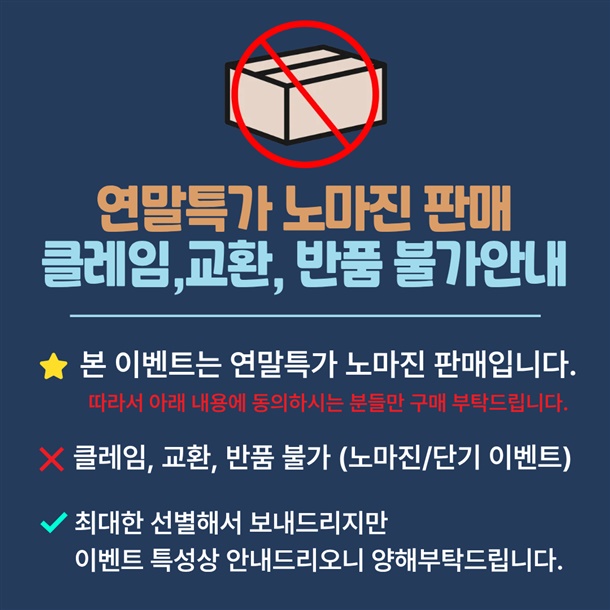 4. 상품 불량 사유와 사진을 남겨 주시면 빠른 처리가 가능합니다.