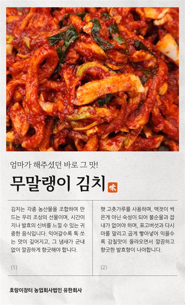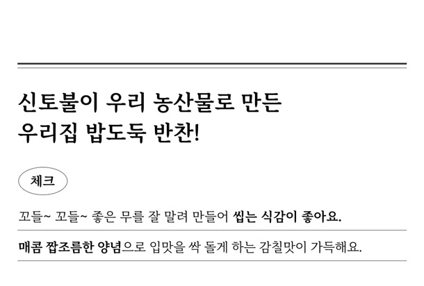 | 1. 포장단위별 용량(중량), 수량, 크기 | 무말랭이 무침 500g |