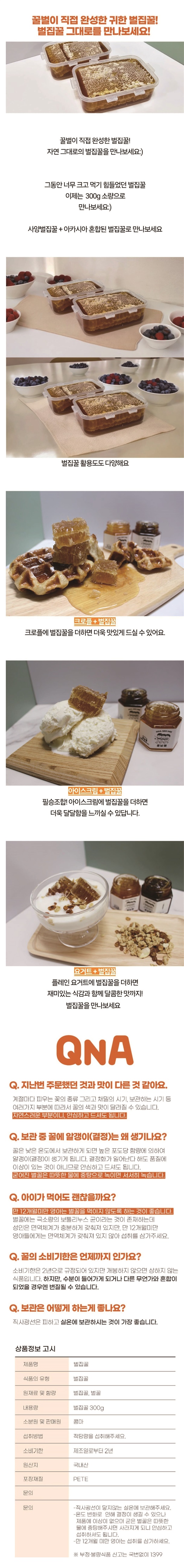 | 1. 포장단위별 용량(중량), 수량, 크기 | 크런치벌집꿀 300g 1개 / 꿀스틱 1포 당 10g 10개입, 20개입 |