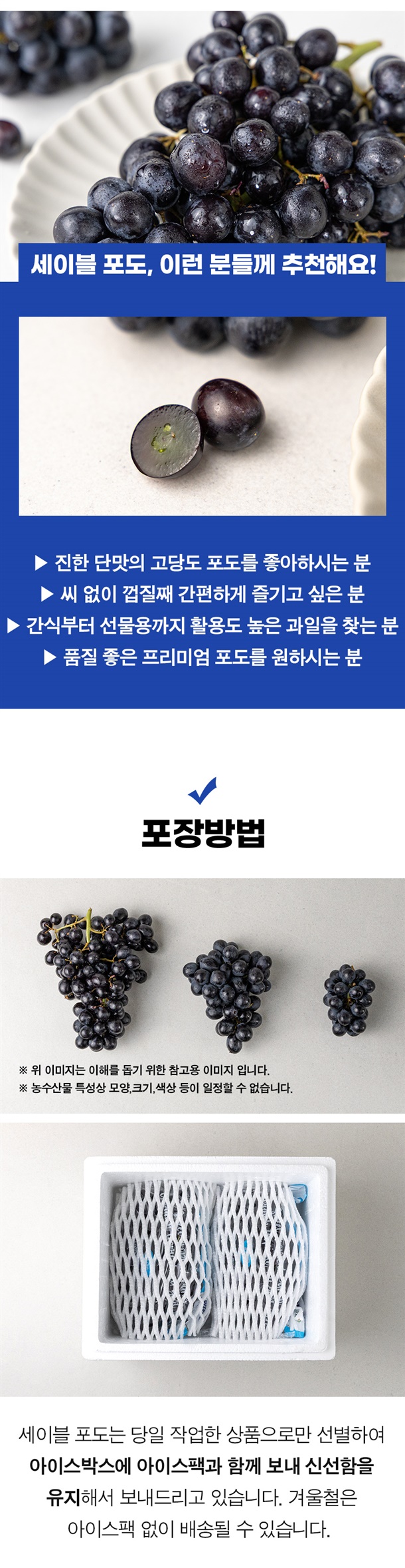 | 1. 포장단위별 용량(중량), 수량, 크기 | 블랙 세이블 포도 1kg / 1-2수내외(중량우선) |