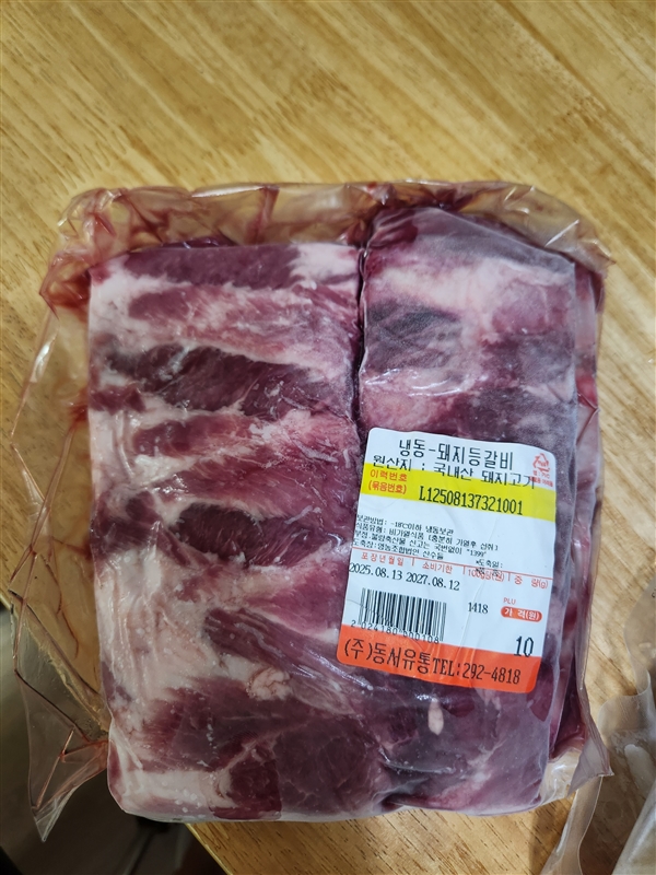1. 포장단위별 용량(중량), 수량, 크기 | 돼지 등갈비 1kg / 12-15대 내외 |