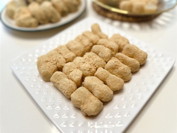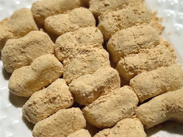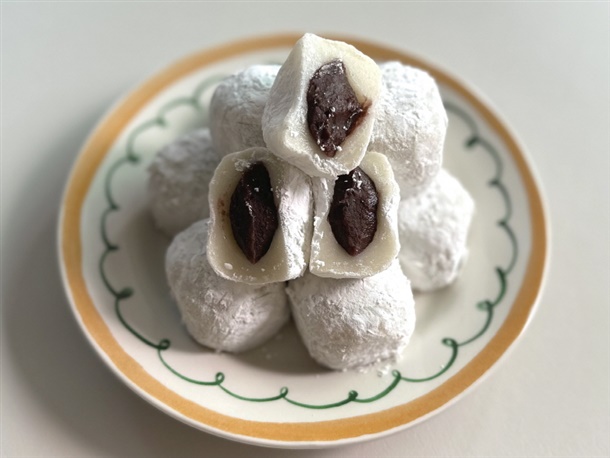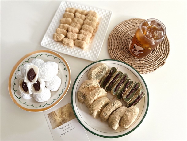 5. 원재료 및 함량 | 찹쌀떡 - 찹쌀(국내산) 50%, 통팥35M{삶은팥 63.1% [팥55.6%(중국산)], 백설탕, 폴리글리시톨시럽분말, 말토덱스트린, 변성정분, 정제염(국산)} 26%, 설탕, 옥수수전분(미국산), 찰옥수수전분, 밀가루, 천일염, 글리세린지방산에스테르(유화제) 콩쑥개떡 - 찹쌀(국내산) 48%, 통팥35M{삶은팥63.1%[팥55.6%(중국산)], 백설탕, 폴리글리시톨시럽분말, 말토덱스트린, 변성정분, 정제염(국산)}22.5%, 설탕, 콩가루(대두 83.7%/ 중국산)4.95%, 찰옥수수전분, 쑥가루(국내산) 3%, 냉동쑥(베트남산)3%, 천일염, 밀가루, 글리세린지방산에스테르(유화제) [대두,밀함유] 콩고물인절미 - 찹쌀(국내산)52.49%,찰옥수수전분(미국산),백설탕,콩가루{대두(중국산) 83.7%,설탕,아스파탐,식염(국내산),생강(국내산)물엿,천일염,밀가루,글리세린지방산에스테르(유화제)[대두,밀,함유] |