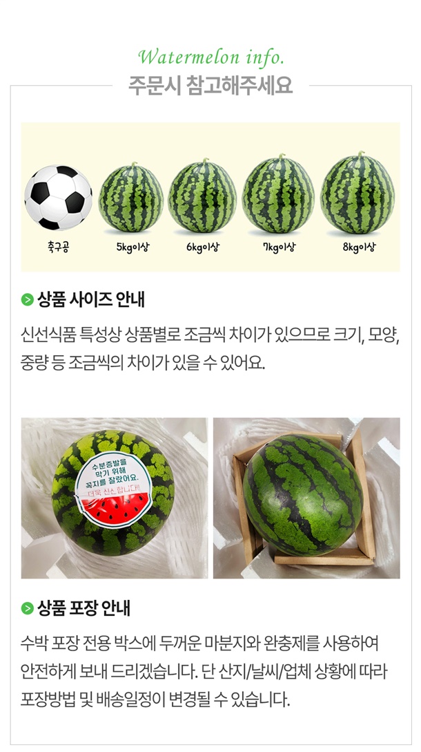 | 1. 포장단위별 용량(중량), 수량, 크기 | 하우스수박 3kg / 4kg / 5kg |