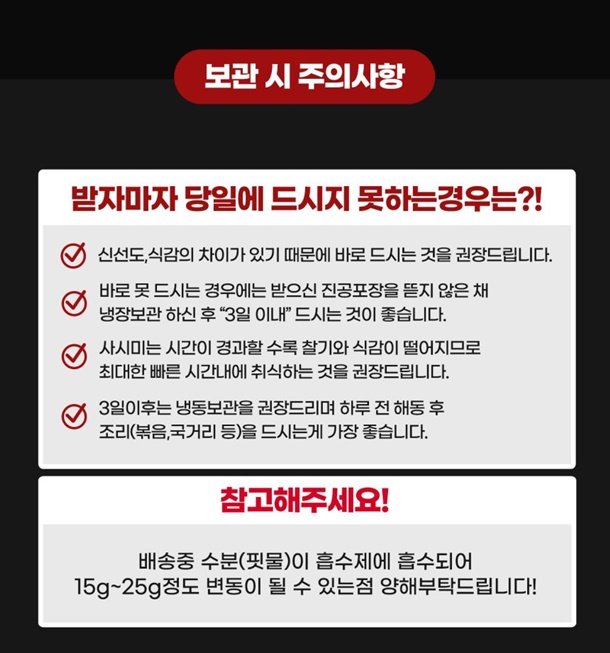 ※ 생물의 경우, 배송 중 머금고 있던 수분을 내뱉어 10~20% 자연감량이 발생할 수 있습니다.