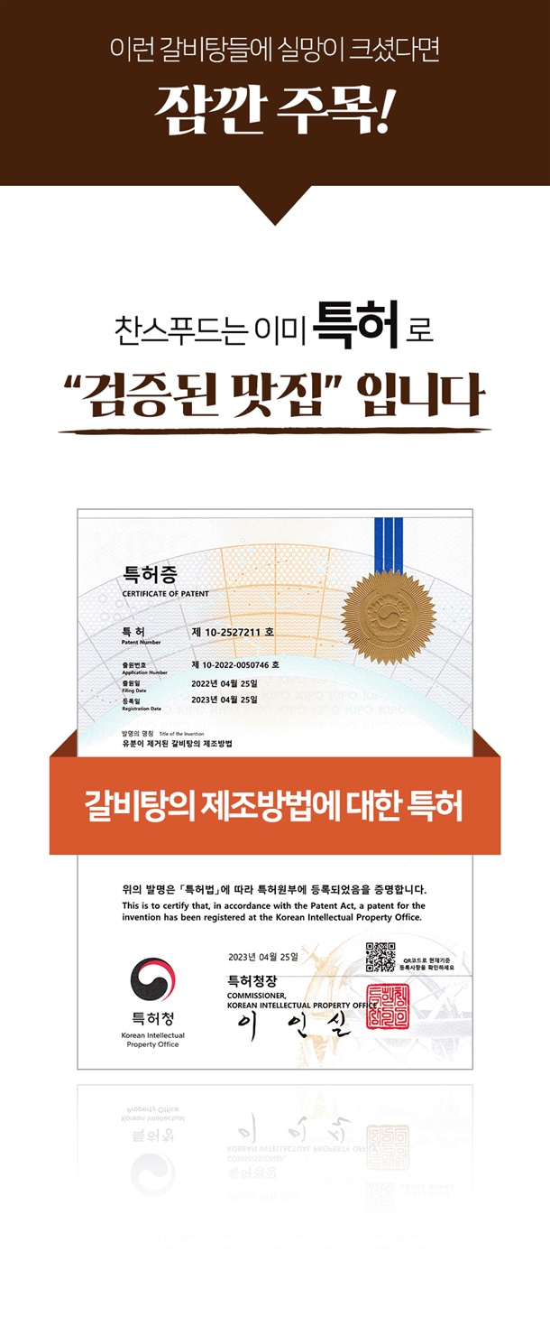 | 1. 포장단위별 용량(중량), 수량, 크기 | 푸짐한 특허받은 프리미엄 갈비탕 700g 1팩/4팩 |