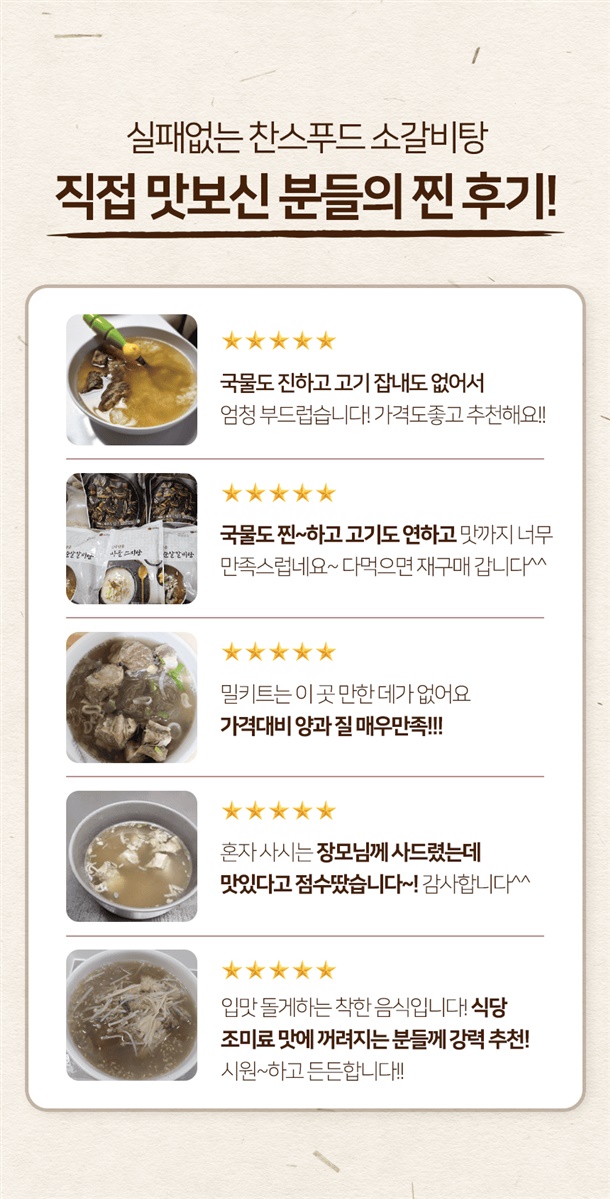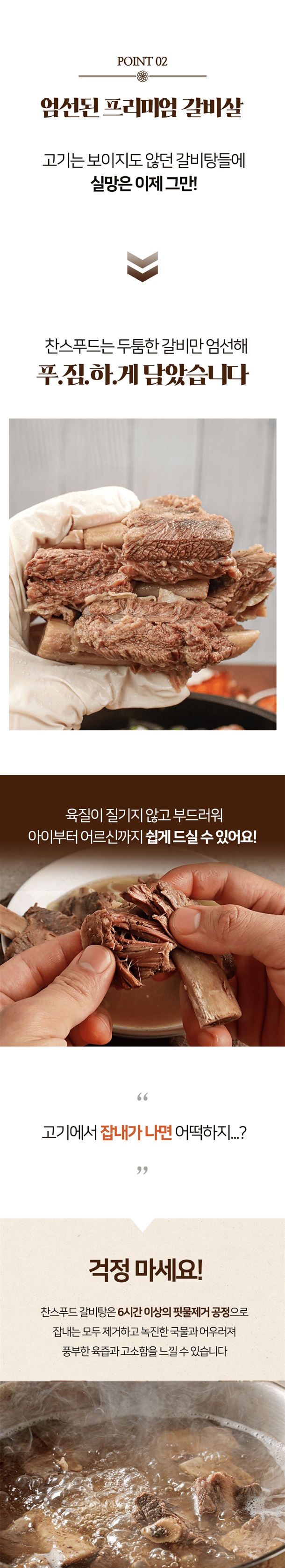 6시간 이상 핏물 제거 공정으로 국물 고기 잡내 NO!