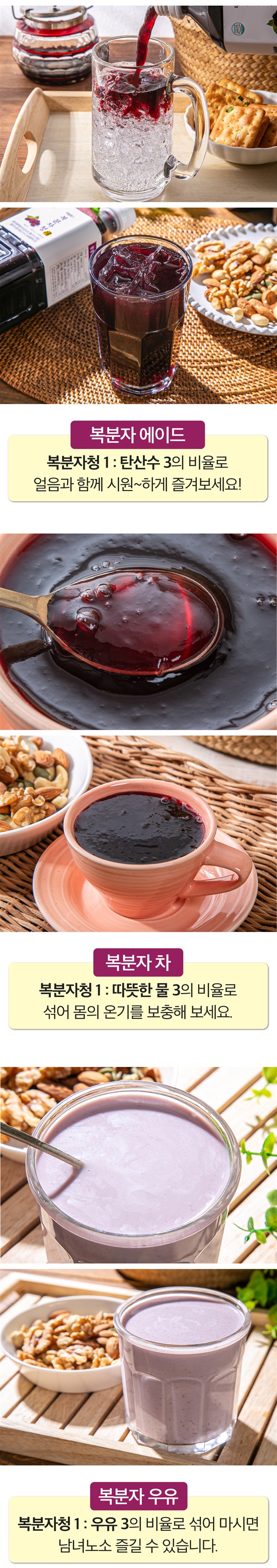 | 5. 원재료 및 함량 | 복분자추출액[복분자(국내산)20.8%,정제수]79.2%,자일로스설탕20.8% |