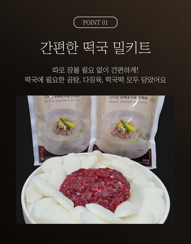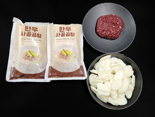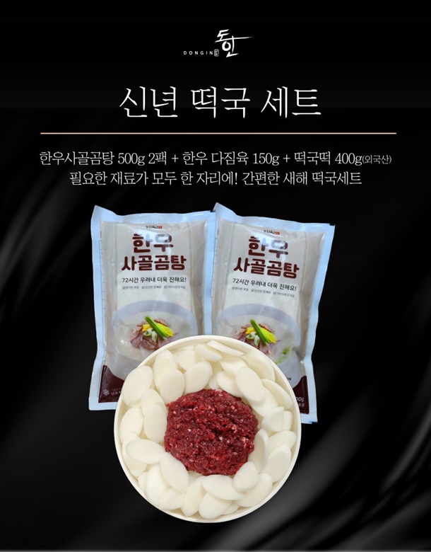 | 1. 포장단위별 용량(중량), 수량, 크기 | 신년세트/한우 다짐육 150g + 떡국떡 400g + 곰탕 500g 2팩 |