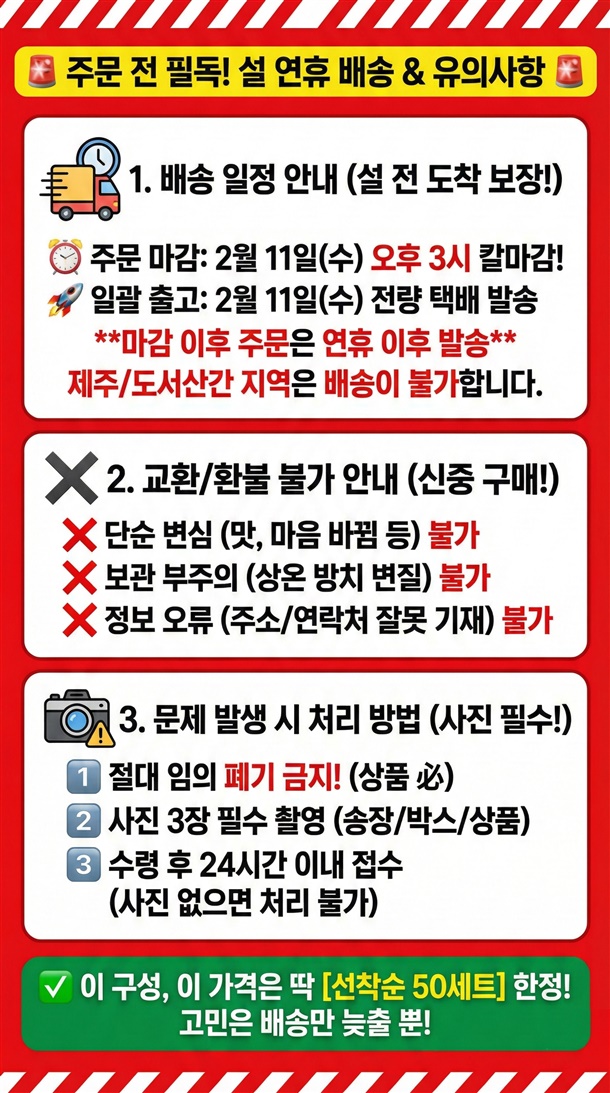 9. 제주/도서산간 지역은 배송지연 및 상품변질에 대한 클레임 접수가 불가한 점 양해 부탁드립니다.