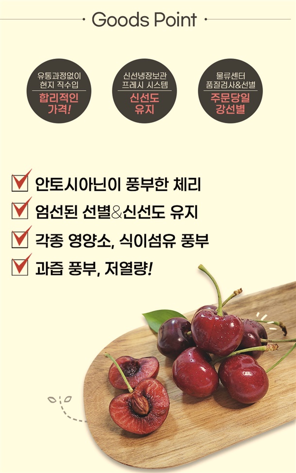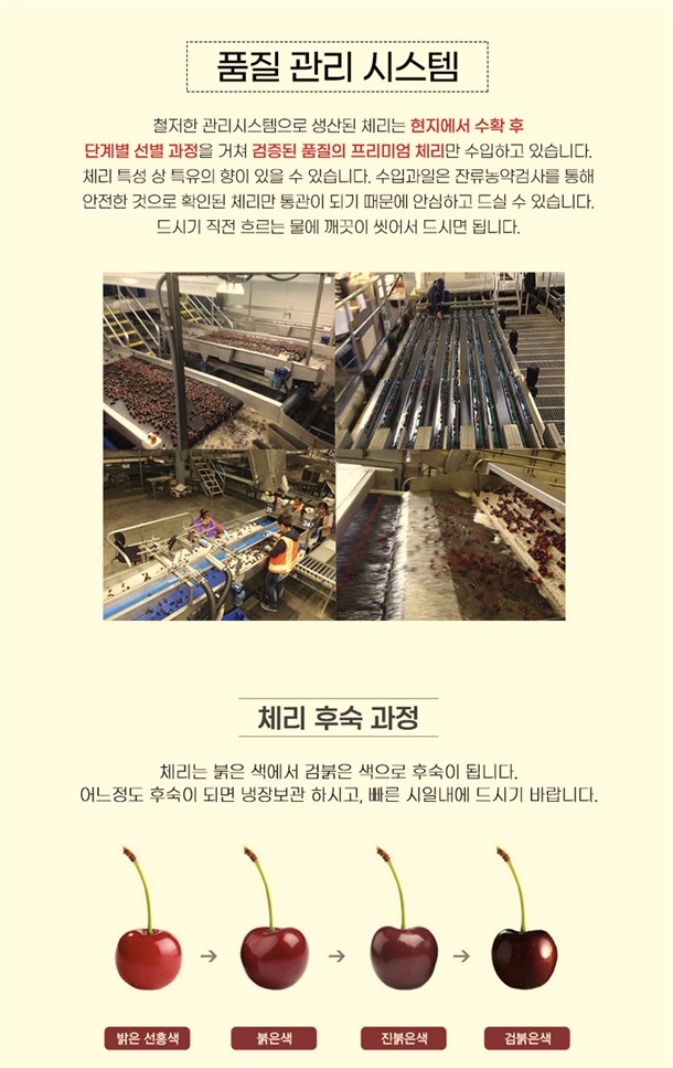 | 1. 포장단위별 용량(중량), 수량, 크기 | 생 체리 500g,생 체리 1kg |