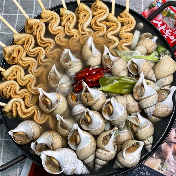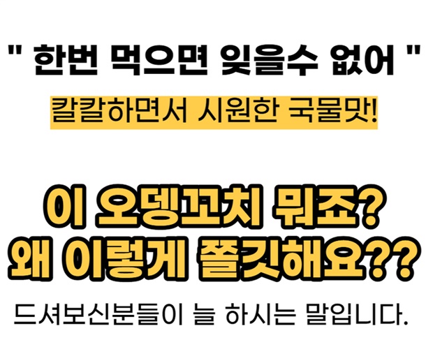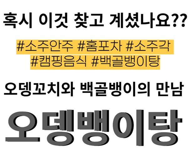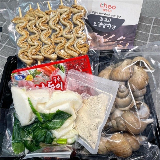 | 1. 포장단위별 용량(중량), 수량, 크기 | 오뎅 골뱅이탕 흰색국물 밀키트 풀구성 : 백골뱅이+오뎅꼬지6개+대파+무+베트고추+비법분말+초장,간장,와사비 |