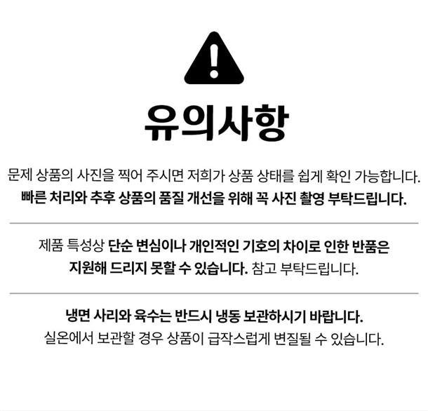 4. 상품 불량 사유와 사진을 남겨 주시면 빠른 처리가 가능합니다.