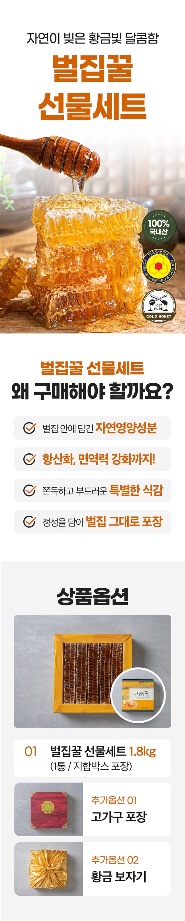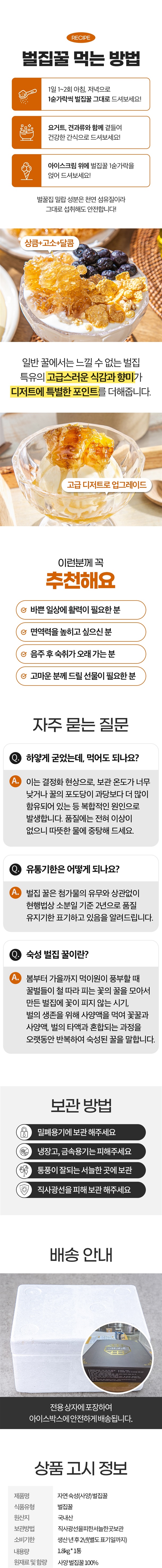 | 1. 포장단위별 용량(중량), 수량, 크기 | 100% 자연숙성 벌집꿀 1.8kg |
