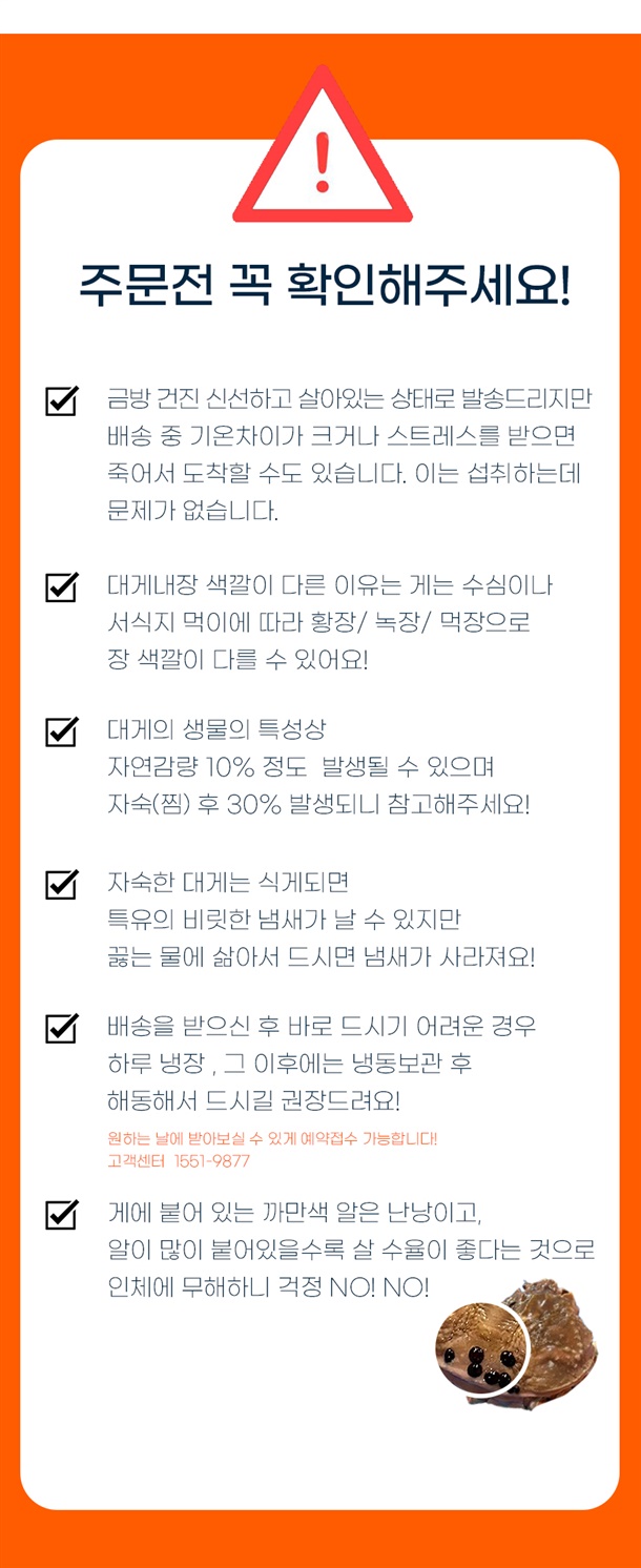 ※ 살아있는 상태에서 발송하지만 배송 중 스트레스로 인하여 기절 및 일부가 죽은 상태로 배송될 수도 있습니다.