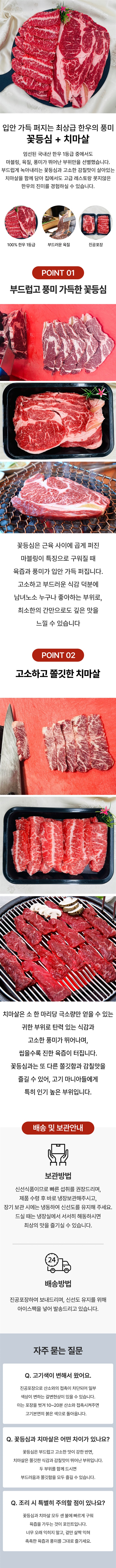 | 1. 포장단위별 용량(중량), 수량, 크기 | 1등급 한우 꽃등심 250g+250g,한우 꽃등심250g + 치마살250g,한우 갈비살 250g+치마살 250g |