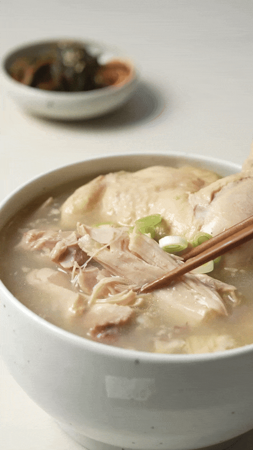 큼직한 닭다리가 통으로 들어간 푸짐한 삼계탕