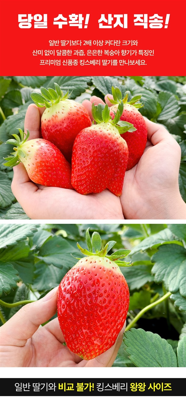 | 1. 포장단위별 용량(중량), 수량, 크기 | 킹스베리 특 400g / 10~13과,킹스베리 왕특 400g / 8~9과,킹스베리 왕왕 400g / 5~7과 |