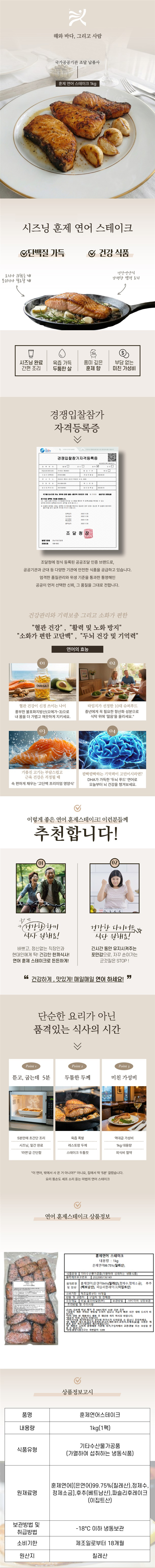 | 1. 포장단위별 용량(중량), 수량, 크기 | 훈제 연어 스테이크 1KG |