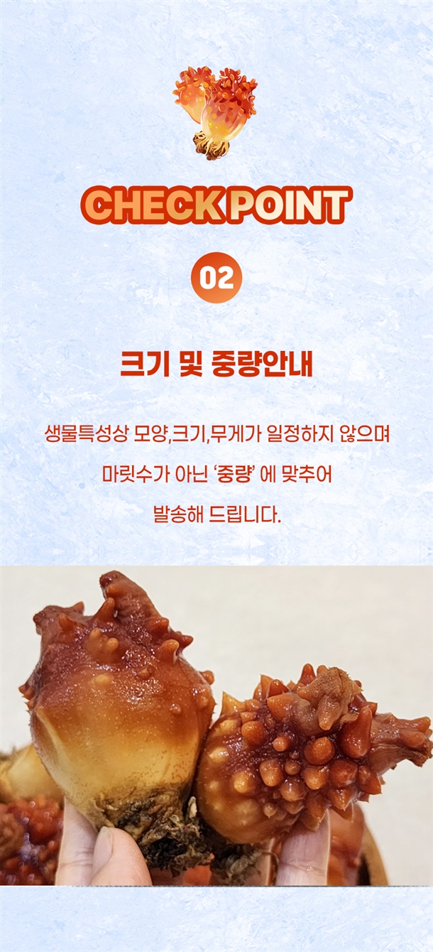 | 1. 포장단위별 용량(중량), 수량, 크기 | 활멍게 2kg+1kg / kg당 12-15미 내외 |
