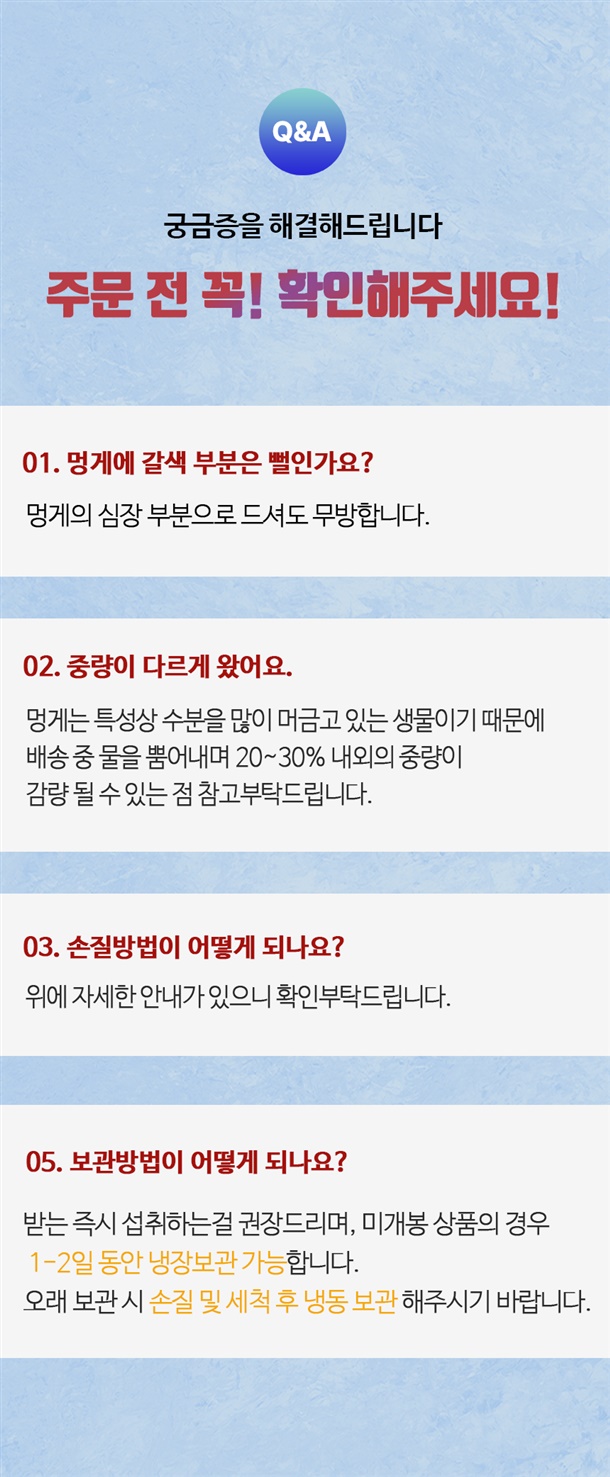 ※ 생물의 경우, 배송 중 머금고 있던 수분을 내뱉어 10~20% 자연감량이 발생할 수 있습니다.