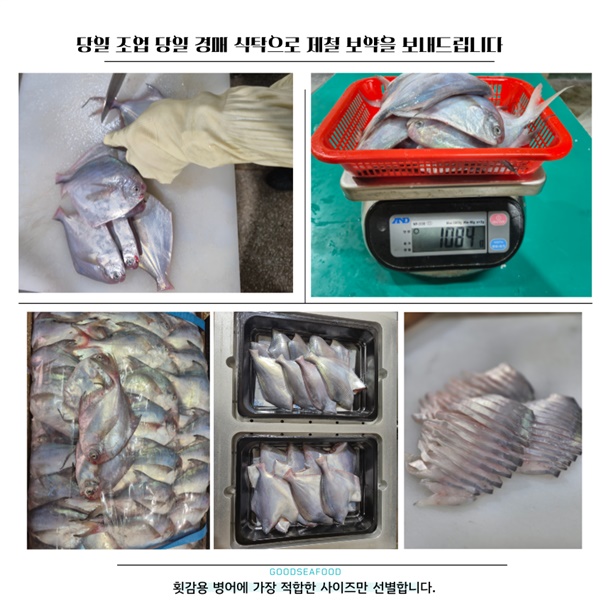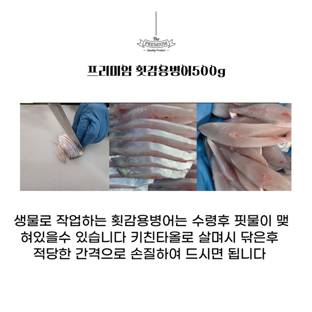 | 1. 포장단위별 용량(중량), 수량, 크기 | 횟감용 손질병어 500g / 손질 전 원물 1kg / 9미내외 |